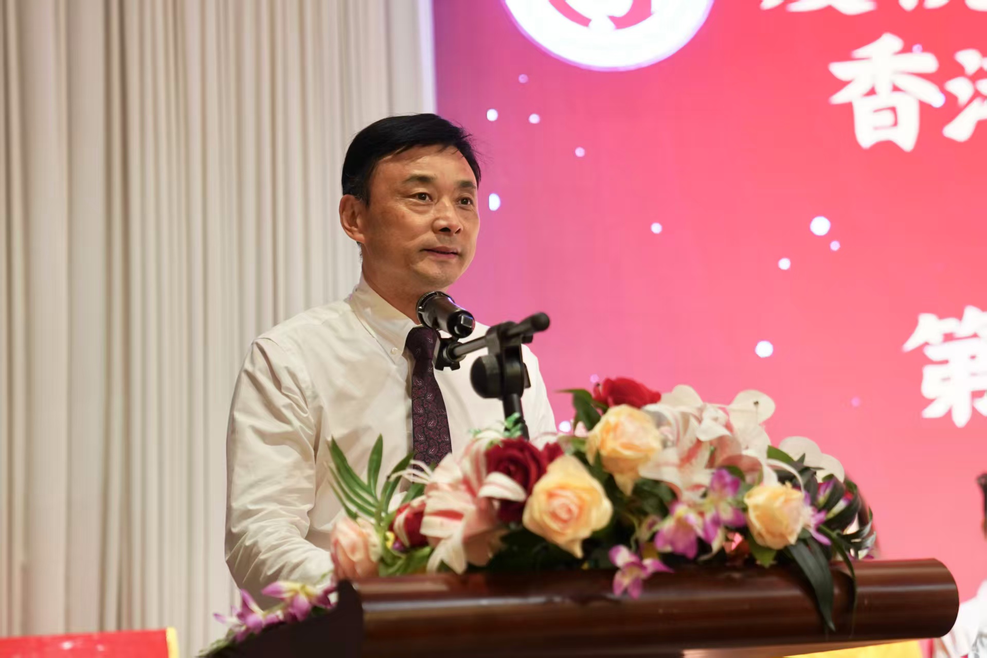 致辭时表示:海納百川,團結包容,是香港南平聯誼總會的一貫宗旨。三十多年來,聯誼總會一步一個腳印,不斷發展壯大。香港建陽聯誼會的成立,是繼香港延平聯誼會和香港光澤聯誼會成立後的第三個閩北縣市區聯誼會。從此,香港南平聯誼總會又增添了一支充滿朝氣的生力軍,建陽在港鄉親也有了一個聯絡鄉情鄉誼的大家庭。他代表香港南平聯誼總會表示熱烈祝賀。當下香港進入新徵程,他相信在吳民會長領導下,在理事鄉親共同努力下,香港建陽聯誼會一定會凝心聚力,攜手奮進,譜寫出愛國愛港愛鄉的新篇章。