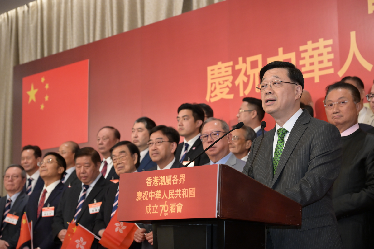 香港潮屬各界慶祝中華人民共和國成立76周年酒會昨日(25日)舉行。行政長官李家超出席致辭時表示,潮籍社群遍布全球,尤其在東南亞地區根基深厚,擁有穩固的商業網絡,可以在「出海」過程中發揮積極作用。他鼓勵大家積極用好「引進來、走出去」策略,將深厚人脈與商業智慧,轉化為香港與內地企業攜手進軍海外市場的具體優勢。潮籍鄉親勤奮拚搏、自強不息,必然可以發揮更大力量,為香港的發展和繁榮,貢獻更大的拳頭力量。