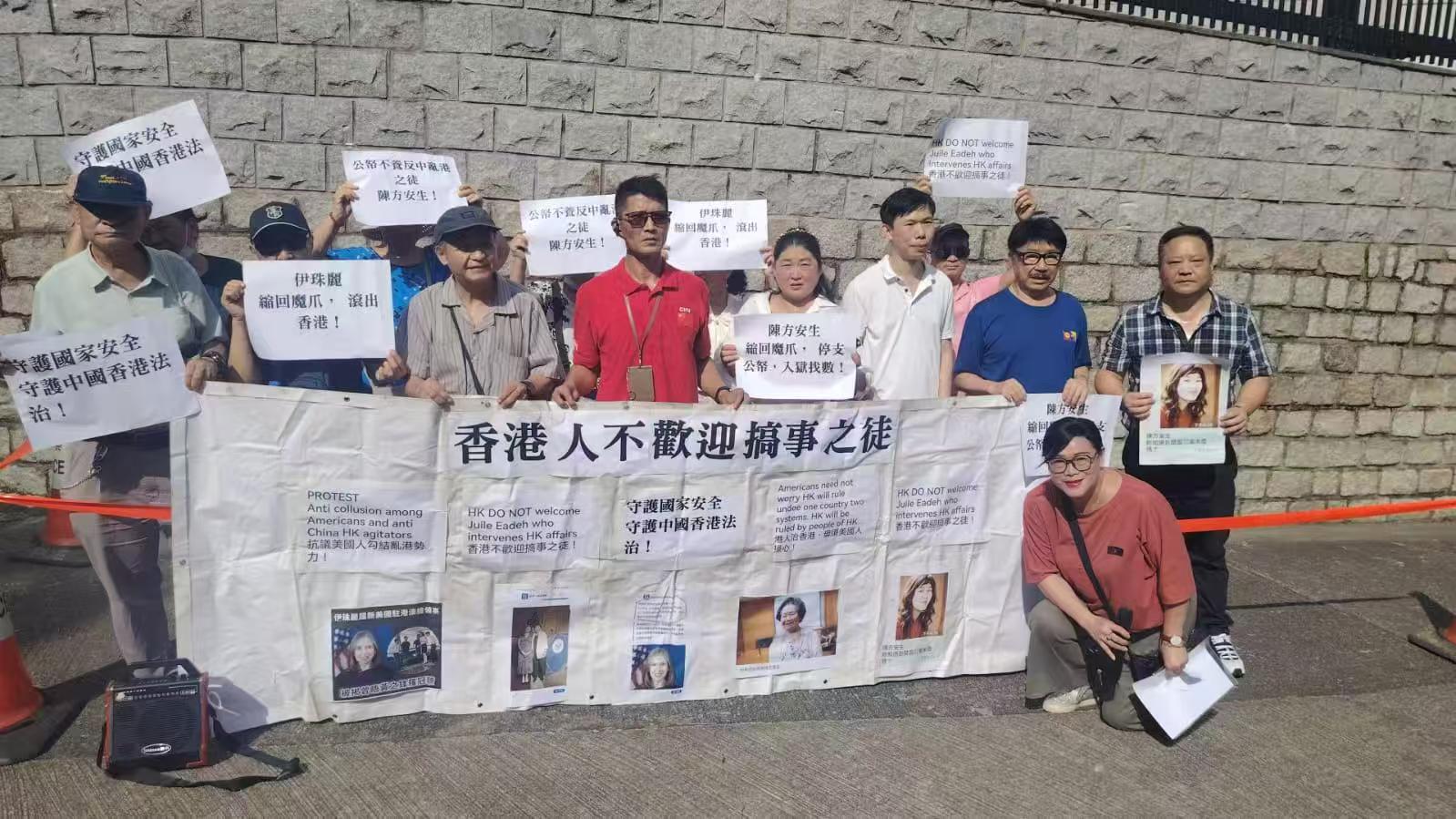 930日),又有一批香港市民前往美國駐港澳總領事館外示威,打出「強烈抗議伊珠麗亂港禍民」「強烈反對伊珠麗勾結亂港分子」「不容干涉香港事務」「不得干涉中國內政」「勿做亂港推手」等口號。伊珠麗的一場政治秀,令香港市民持續透過抗議表達不滿情緒,希望能夠引起此人深刻反思。