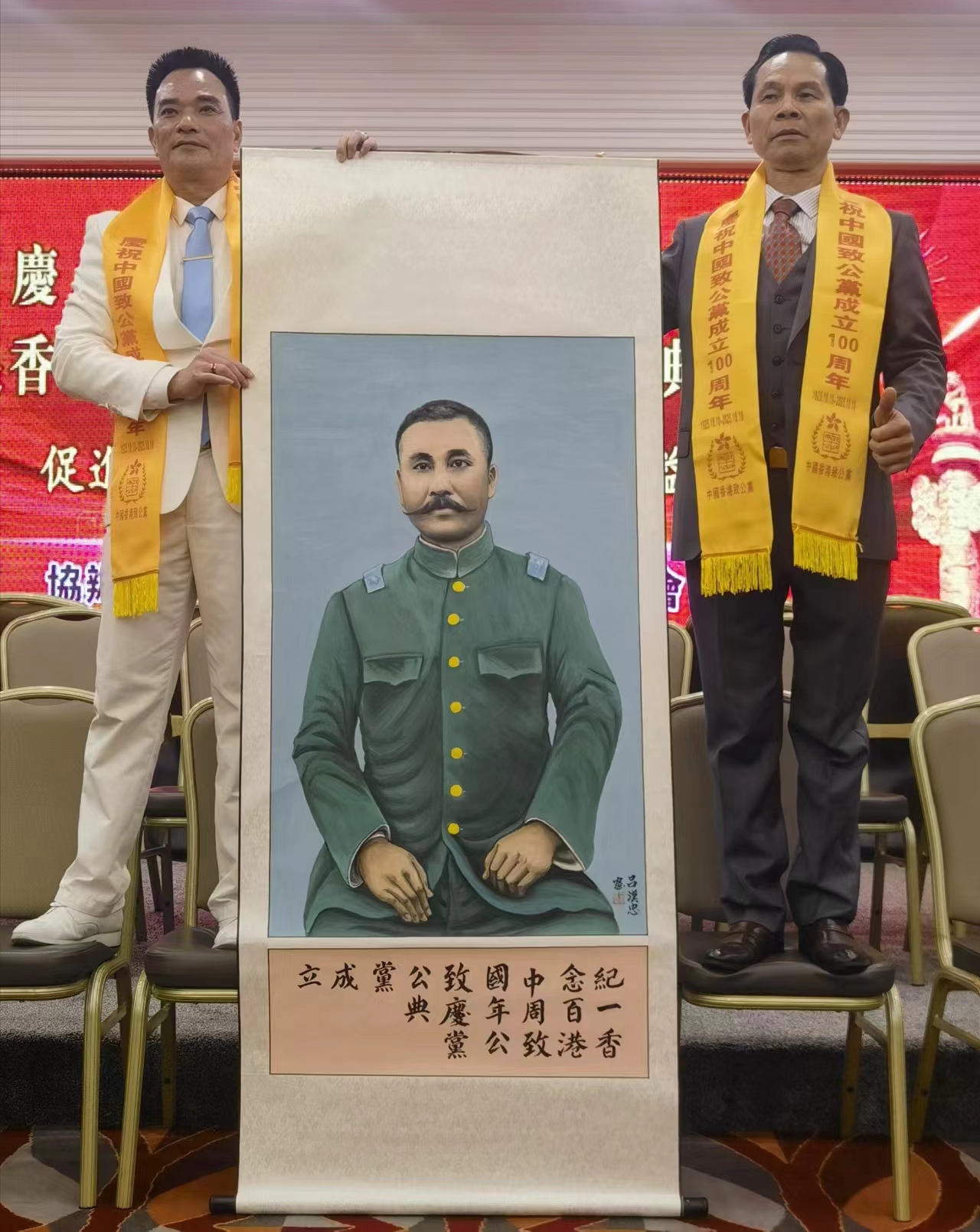 惠州市大画家吕汉忠赠画陈炯明画像一幅高3米宽1.8米画像