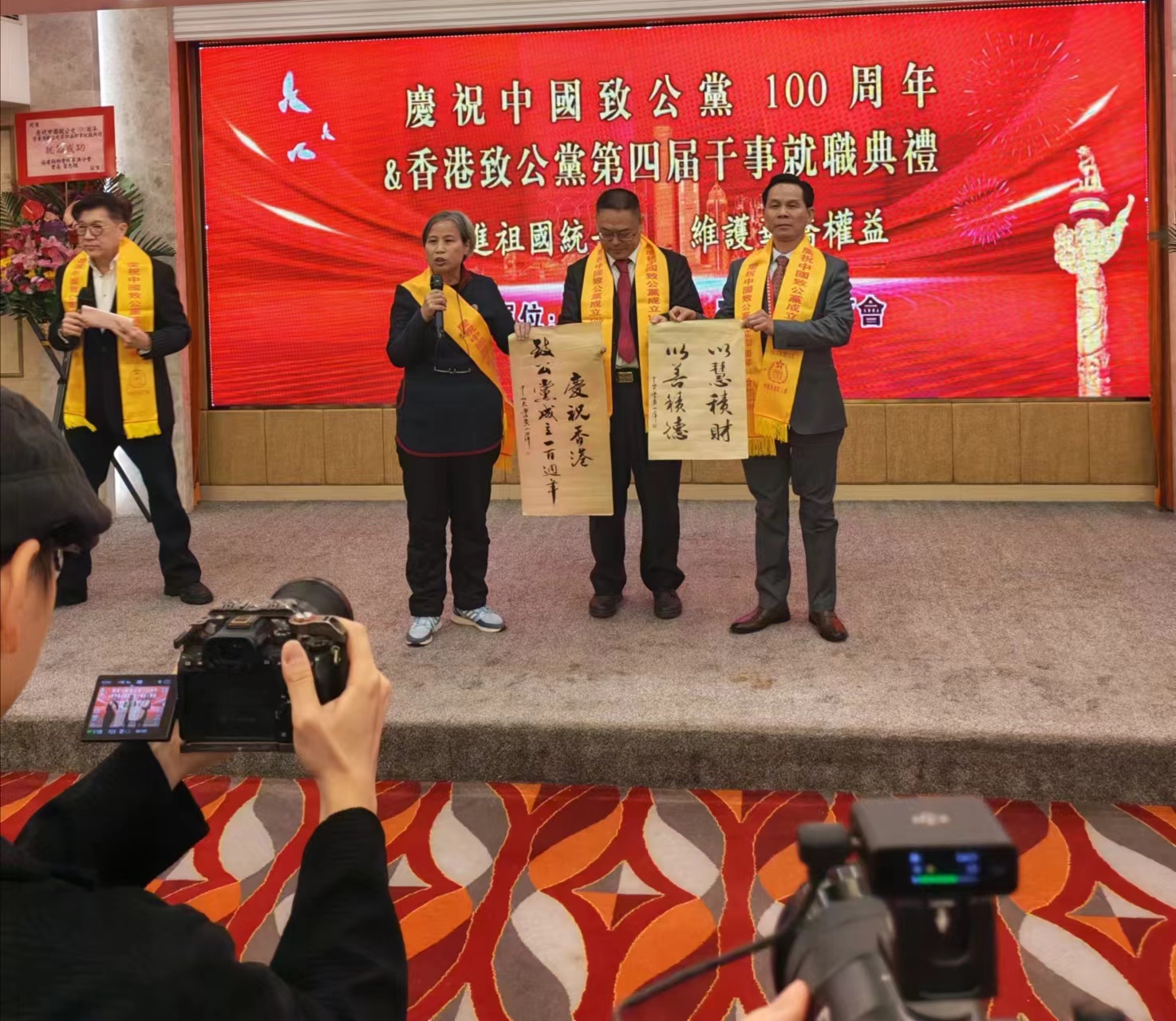 2025年12月28日庆祝中国致公党成立一百周年暨香港致公党第四届干事就职典礼在香港荃湾大厦举行隆重举行。现场嘉宾云集、侨心汇聚,各界代表共同回望致公党百年“致力为公、侨海报国”的光荣历程,见证香港致公党薪火相传的重要时刻,凝聚促进祖国统一、维护华侨权益的强大合力。