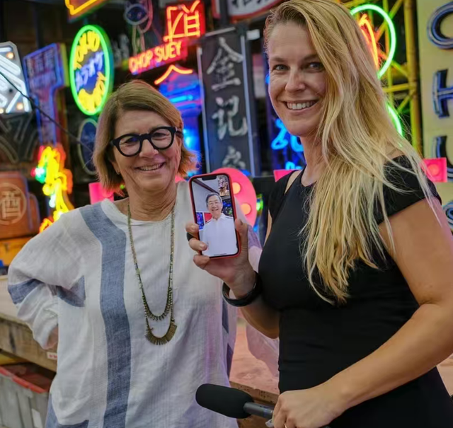 圖爲美國知名藝術家麗莎.舒爾特(左)與黃建南通過視頻互動