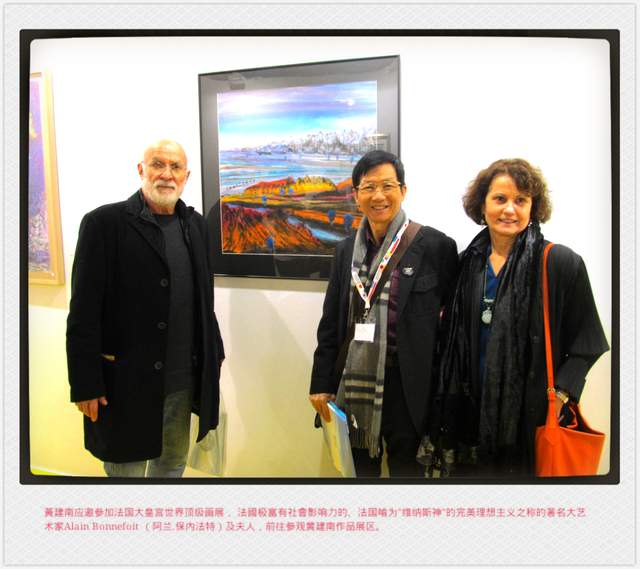 圖爲黃建南應邀參加法國大皇宮世界頂級畫展,與著名藝術家Alain Bonnefoit伉俪留影。