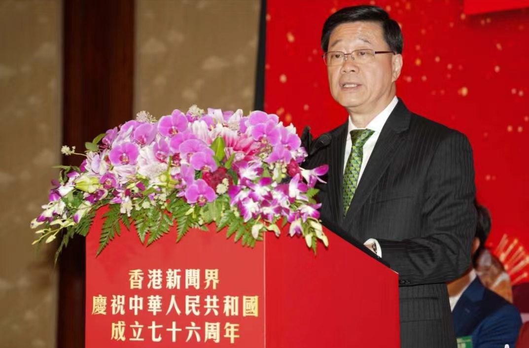 今天(109日),香港新聞界慶祝中華人民共和國成立76周年活動隆重舉行。香港特別行政區行政長官李家超,中央人民政府駐香港特別行政區聯絡辦公室主任周霽,中央人民政府駐香港特別行政區維護國家安全公署副署長陳楓,中華人民共和國外交部駐香港特別行政區特派員公署副特派員花有,中國人民解放軍駐香港部隊副司令員譚志偉以及政務司司長陳國基,財政司司長陳茂波,紫荊文化集團董事長許正中,香港新聞界國慶籌委會主任委員、香港新聞工作者聯會主席、香港大公文匯傳媒集團董事長李大宏等出席主禮。近500位社會各界賢達與新聞界同仁齊聚一堂,共同祝願祖國繁榮昌盛,香港社會持續穩定發展。