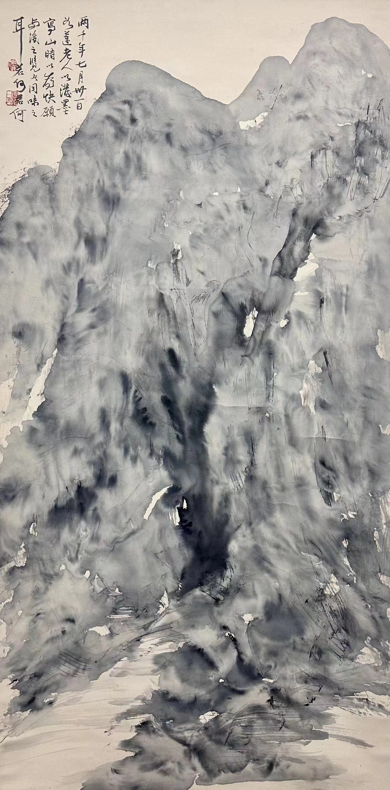 他對水的運用尤為超絕,通過調控水量、墨量與紙張性能,營造出雲煙氤氳、雨霧迷蒙、山川渾茫的貴州意象。其畫面墨色層次豐富至極,從極焦至極潤,於“蒼潤”中見“華滋”,將水法、墨法巧妙融入筆端,把水墨的材料表現力推向新高度。