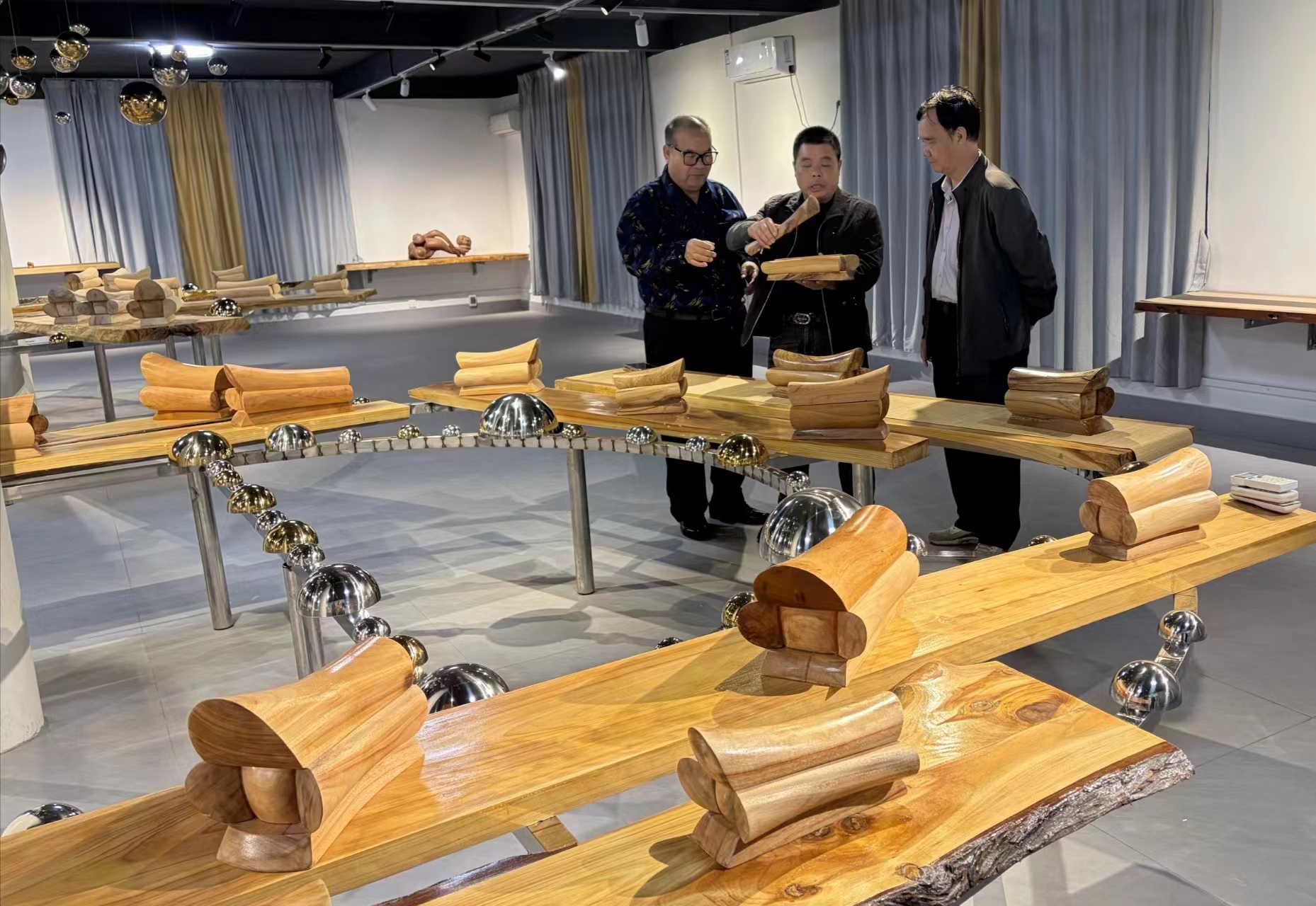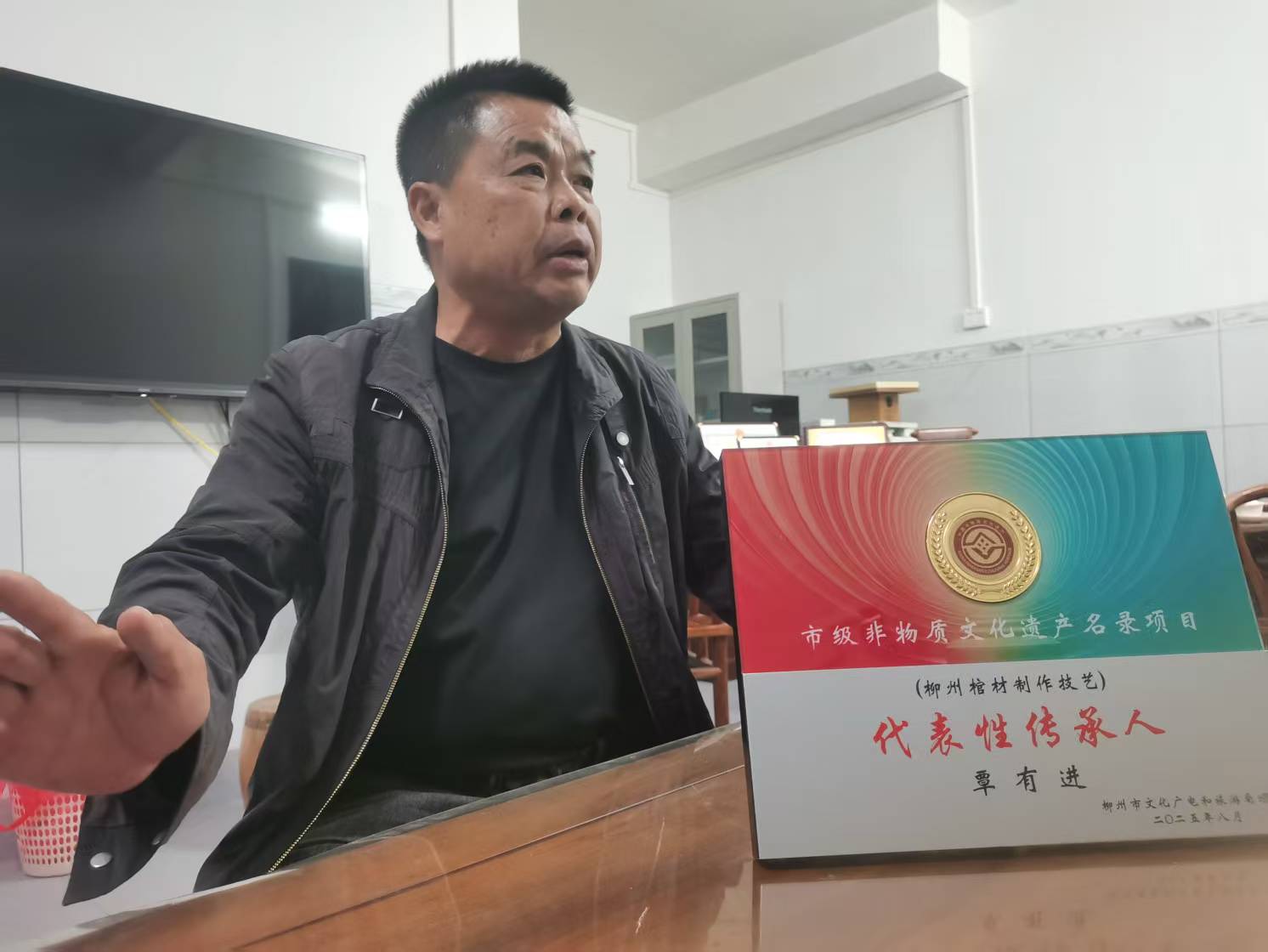 8月,覃有進被認定為柳州棺材製作技藝代表性傳承人。其個人作坊已擴展至5個,總面積4000餘平方米,帶動周邊形成30餘家棺材生產主體的產業集群,從業人員超百人,“柳州棺材”從分散的“非遺工坊”逐步邁向組織化、規模化、品牌化的非遺加工基地。