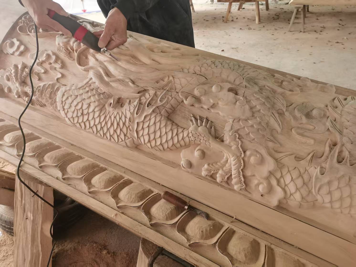 在保留傳統榫卯結構、手工雕刻精髓的基礎上,覃有進帶領團隊積極引入現代工具與管理方式,實現“守正”與“創新”的平衡。如今,一件工藝小棺材從選料到成品,依然遵循30餘道工序,但效率與精度顯著提升,鐳射測距、數控開料、環保漆藝等現代技術被合理應用,而雕花、打磨、上漆等關鍵環節仍堅持手工精修,確保“形神兼備”。
