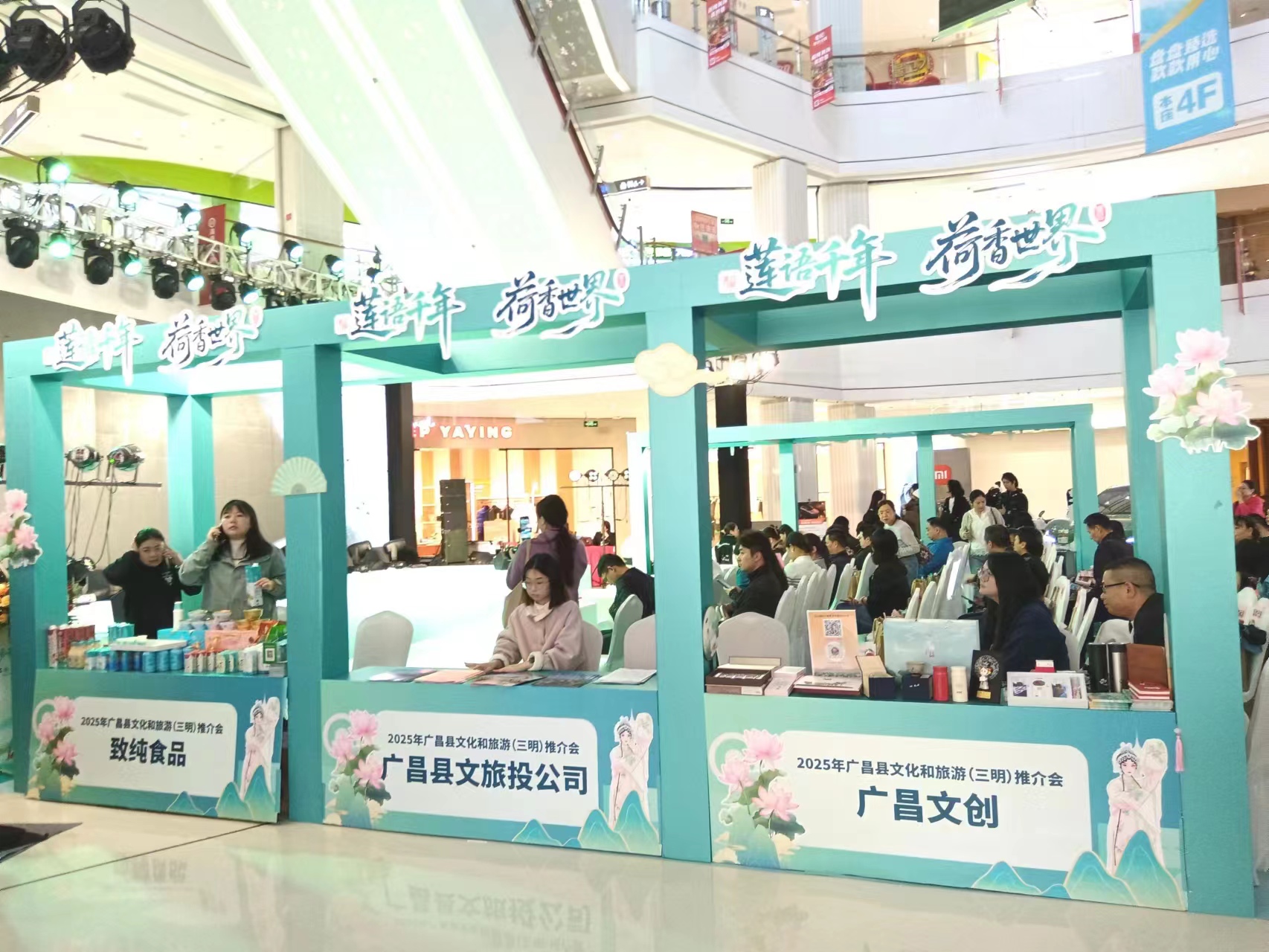 推介會上,廣昌縣文旅局通過宣傳片、圖文展板、特色產品展示等形式,全方位呈現了廣昌的文旅資源。作為中央紅軍長征的重要出發地之一,廣昌紅色文化底蘊深厚,高虎腦戰役遺址、紅色革命舊址群等景點串聯起崢嶸歲月的記憶。秋日的廣昌,十萬畝蓮田褪去夏日的絢爛,展現出豐收的厚重與寧靜;驛前古鎮的青石板路映著秋陽,明清建築群靜謐古樸;甘竹老街的市井煙火與非遺文化相映成趣,吸引遊客駐足體驗。