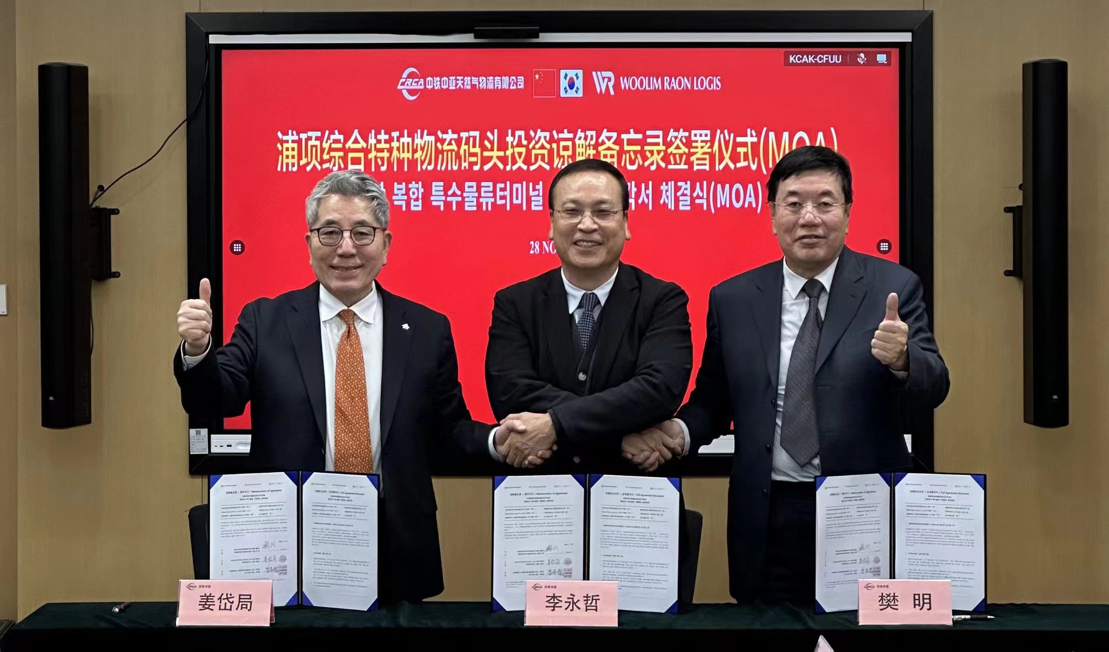 中鐵中亞天然氣物流有限公司(中鐵中亞天然氣物流有限公司)、WOOLIM RAON LOGIS,以及全球創新中心國際環境與能源總部(GIC IHEE)於11月28日正式簽署《大韓民國特種物流樞紐共建合作體系MOA》,宣佈以浦項為核心,全面推進基於ESG理念的全球特種物流合作模式。