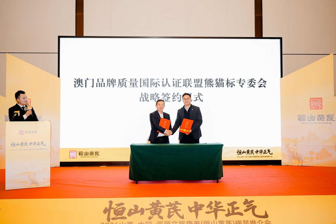 作為本次推介會在品牌規範化與國際化路徑上的重要成果,澳門品質品牌國際認證聯盟“熊貓標”戰略簽約儀式  在大會期間舉行。通過引入權威品質認證與品牌標識體系,恒山黃芪相關產品將在品質標準、認證體系及國際規則對接等方面獲得專業支撐,進一步提升市場公信力與國際識別度,為其參與國際註冊、跨境貿易和海外市場拓展奠定制度基礎。