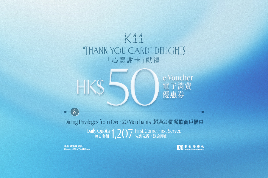 K11 MUSEA及K11 Art Mall將於12月7日投票日起,推出為期一個多月、總值約200萬元的消費禮遇。市民憑投票後由政府派發的「心意謝卡」,可在K11 MUSEA或K11 Art Mall換領價值港幣50元的電子消費優惠券,每日名額1207個,藉此鼓勵及感謝市民盡公民責任投票。