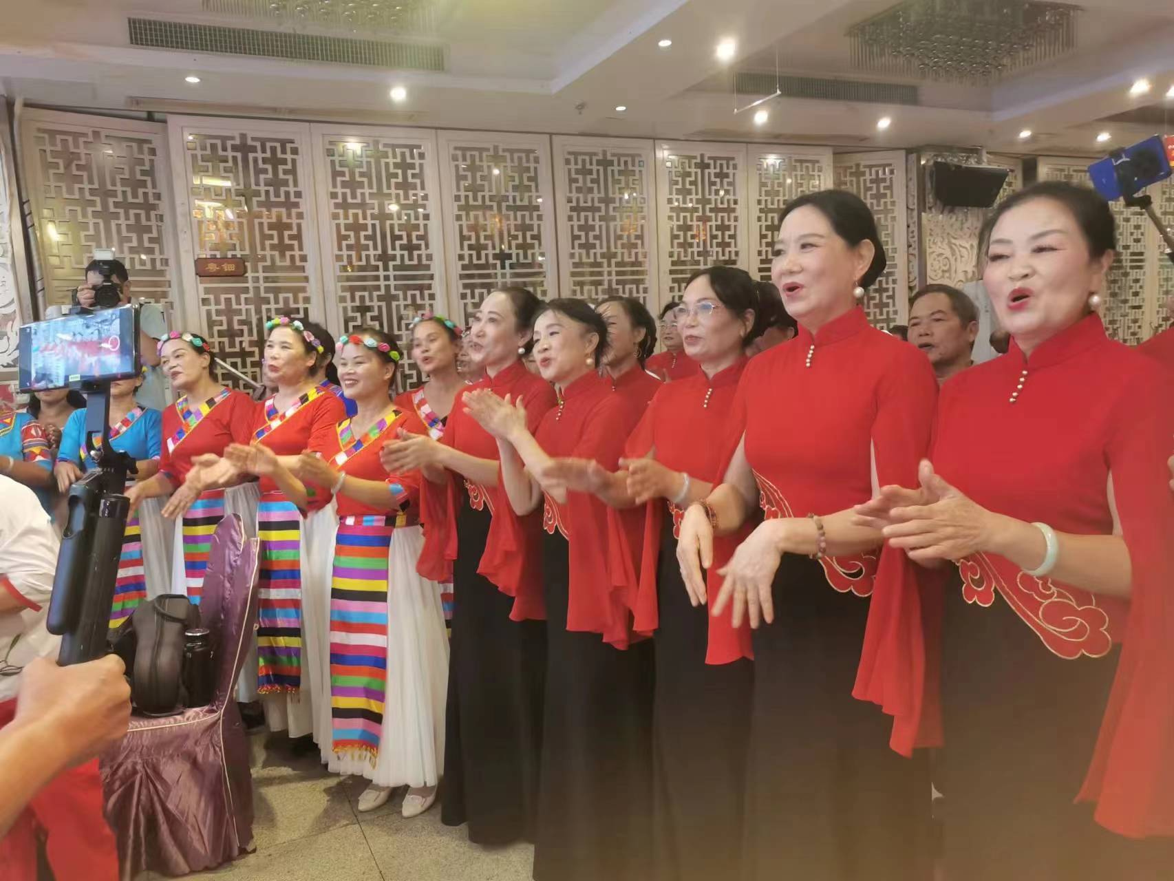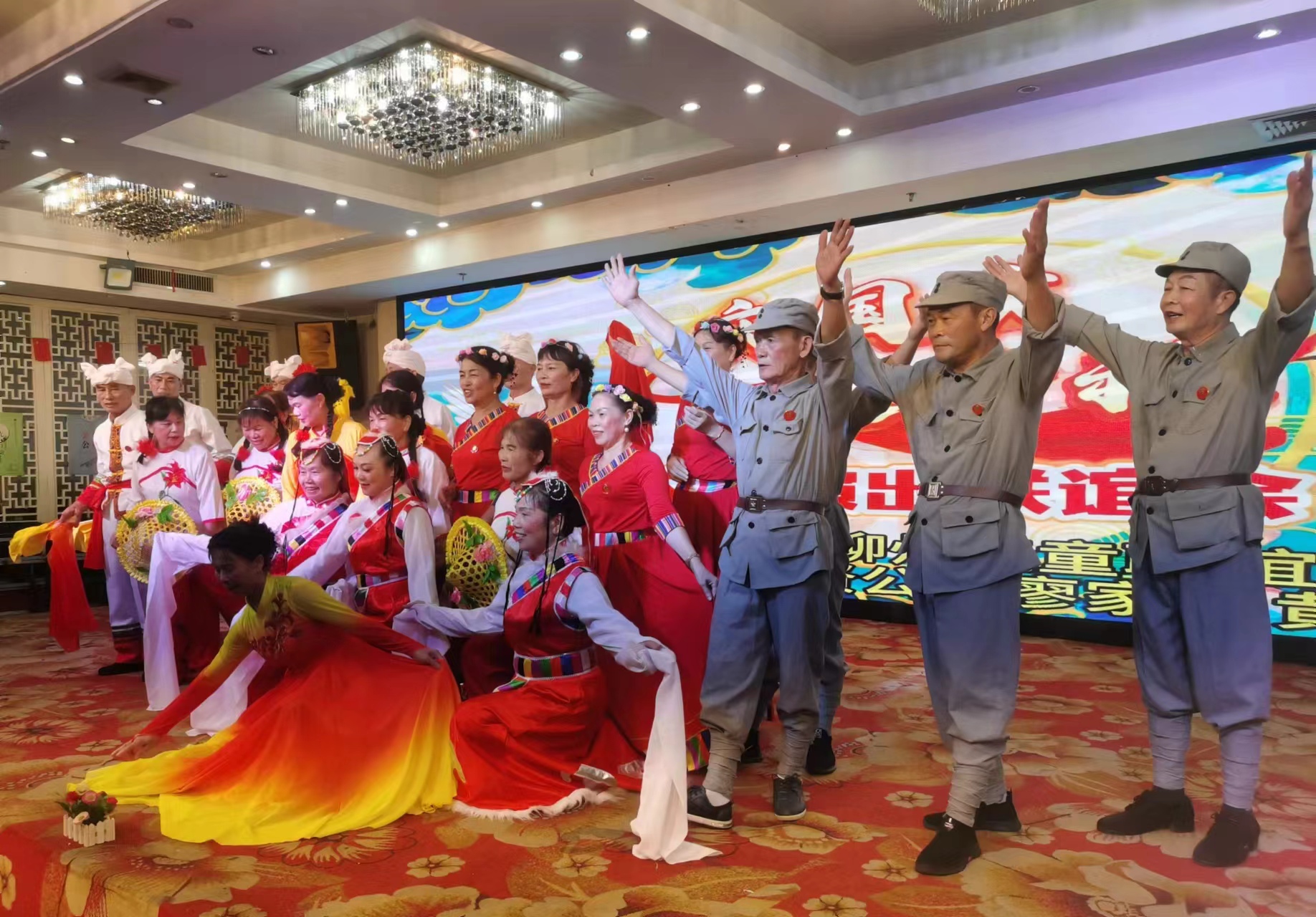 300余名觀眾起身合唱《歌唱祖國》《我和我的祖國》《歡聚一堂》等歌曲。台下的300多名歌舞愛好者自發地圍成幾個圈圈,載歌載舞,歌聲嘹亮,舞姿翩翩,紅旗招展,每個人的臉上都洋溢著笑容---“這不僅是一場活動,更是一次心靈的相聚。”一位參與者感慨道。