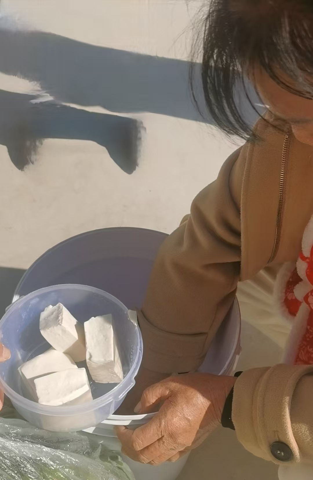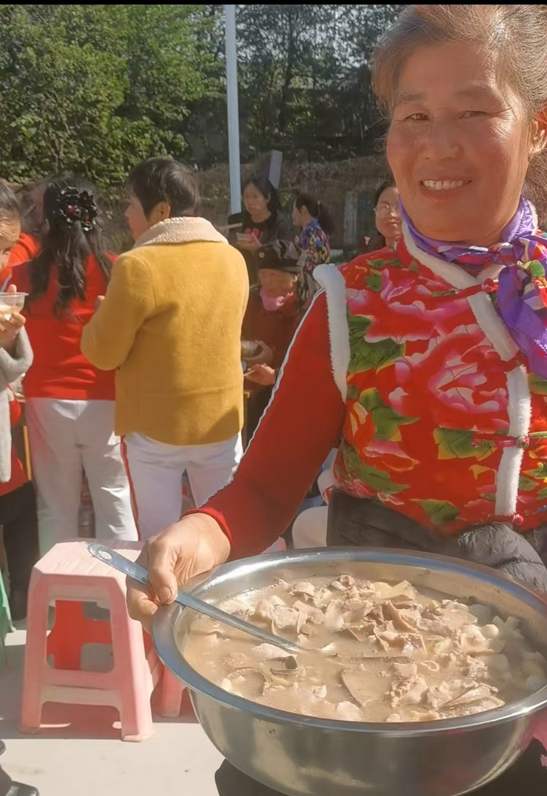 的明月清風用本土黃豆制作了2鍋豆腐,配上姐妹們的青菜,樸素卻暖心;木岸隊的土雞、進德的土豬肉擺上了桌,