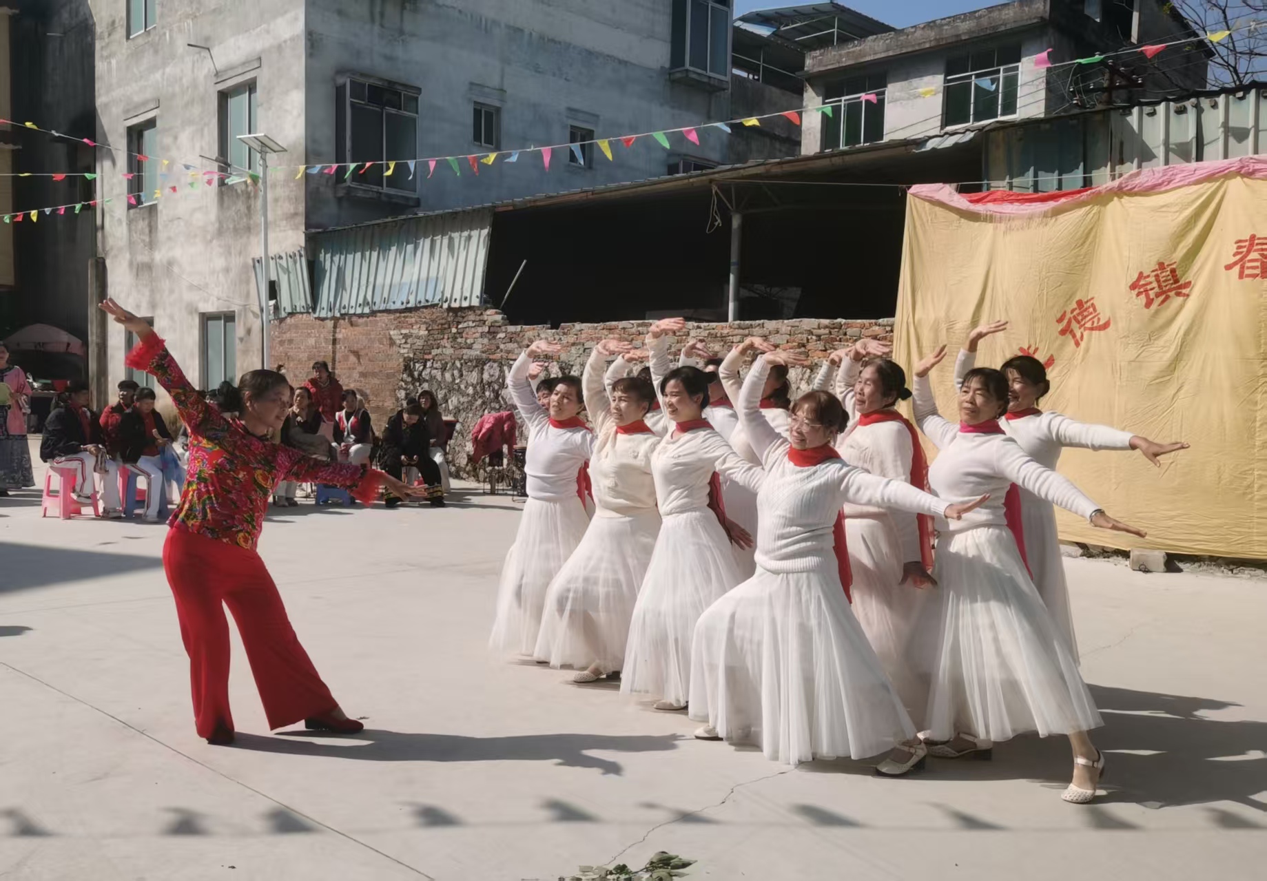 此次迎新匯演活動由進德春曉藝術團發起,13支舞蹈隊以自編自演的方式迎接新年的到來,笑聲與掌聲在曬場上空久久回蕩。